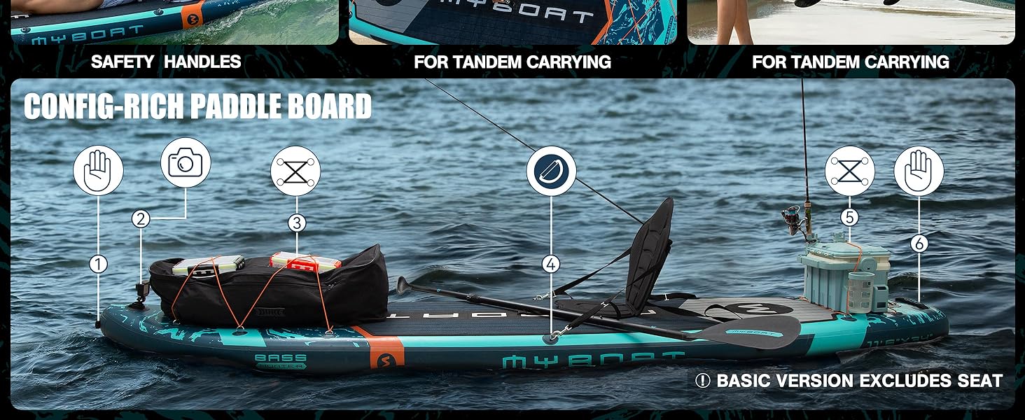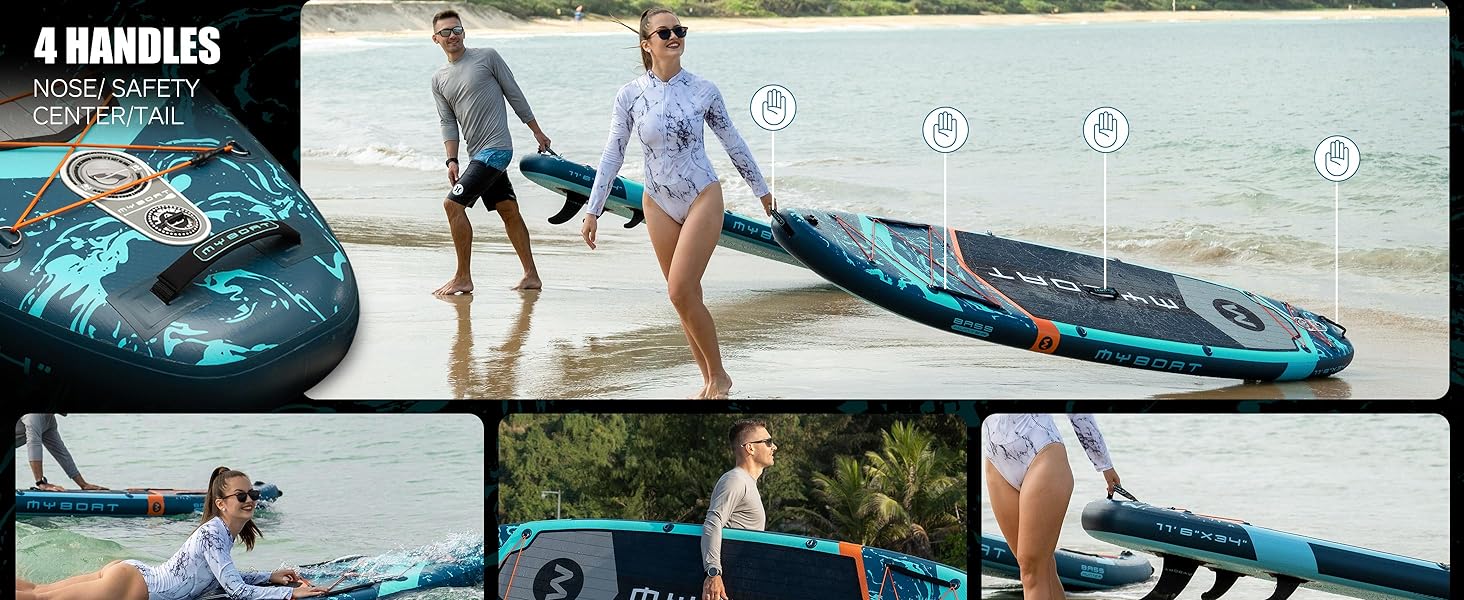 11'6" Extra Wide Inflatable Paddle Board 34" Stand Up SUP for Fishing with 3 Removable Fins Dual Bungees Camera Mount Hand Pump Strong Paddle 5L Dry Bag Leash